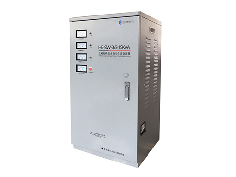 HB-SW系列三相高精度全自動(dòng)交流穩(wěn)壓器是單相系列高精度全自動(dòng)交流穩(wěn)壓器的組合。電網(wǎng)輸入為三相四線制,星形(Y形)接法,輸出亦為三相四線制,由三只電流表分別指示各相的輸出電